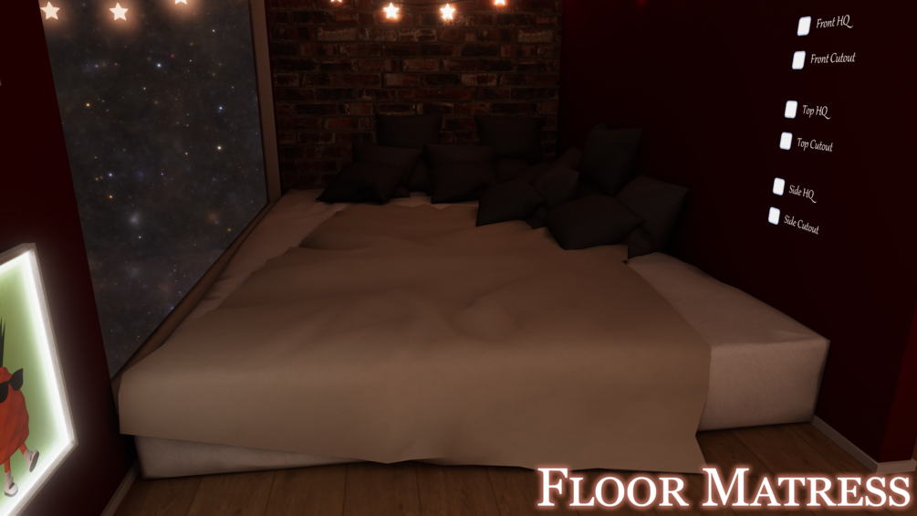 👋 Hello there! I've decided to share two items from Trolli's Cozy Corner world - the Floating Bed and the Floor Mattress. These assets, crafted with love, are now ready for you to incorporate into your own creative endeavours!